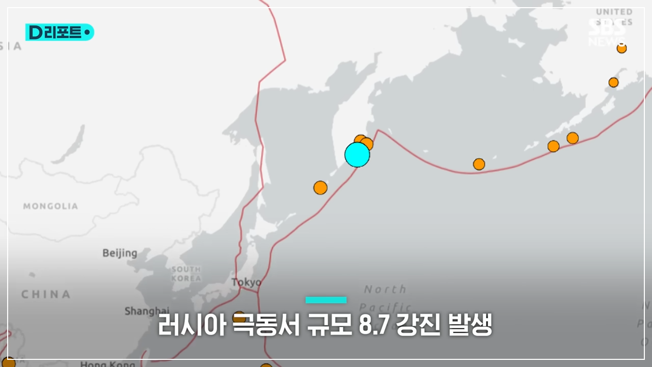 오늘(7월 30일) 새벽, 러시아 캄차카반도 동쪽 해역에서 규모 8.7의 초강진이 발생했습니다.