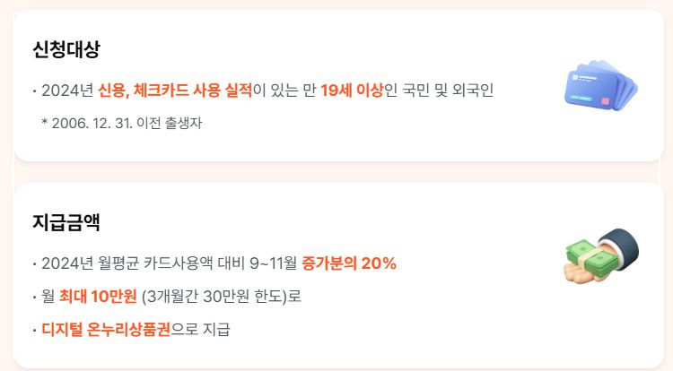 | 대상 자격 | 만 19세 이상, 2024년 카드 사용 실적, 외국인·가족카드 일부 인정 |