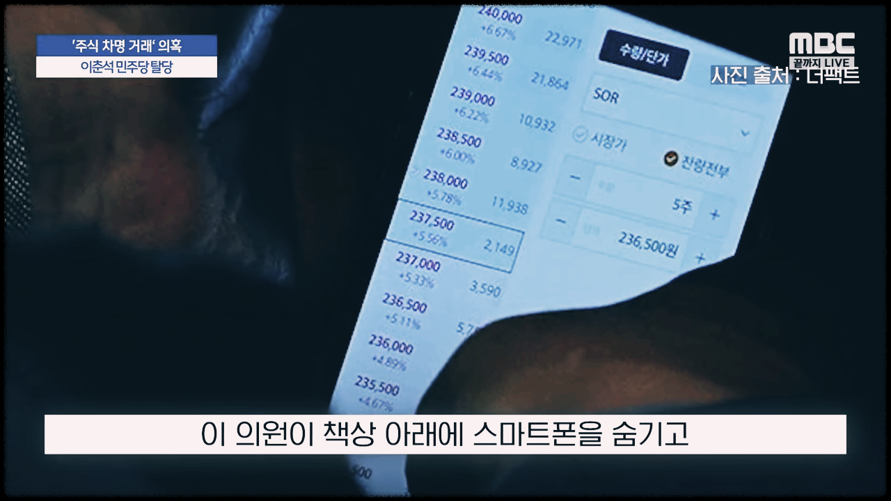 - 문제는 해당 계좌의 주인이 보좌관임에도 이 위원장이 직접 거래 내역을 확인하고 주문 정정까지 시도한 정황이 포착된 점입니다. 본인의 휴대전화로 해당 계좌를 조작한 듯한 사진이 언론에 공개되며 의혹은 더욱 확산되었습니다.