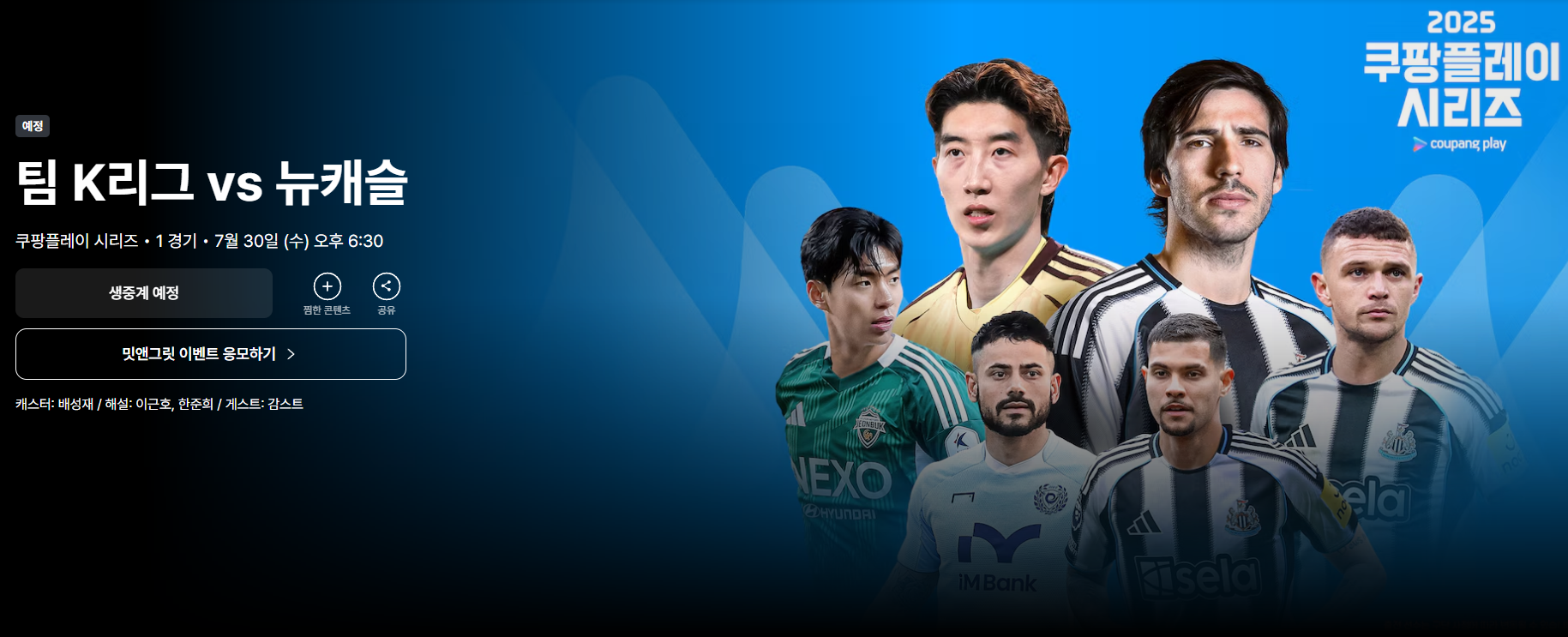 ✅ 쿠팡플레이로 팀 K리그 vs 뉴캐슬 경기 생중계 보는 방법